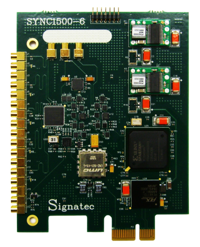 - Signatec品牌SYNC1500是一款PCIe總線的高性能時鍾及觸發同步卡,提供5路時鍾輸出及高精度的觸發輸出信號,時鍾頻率最高可達1.5GHz,可實現對最多5個Signatec板卡的完美同步。